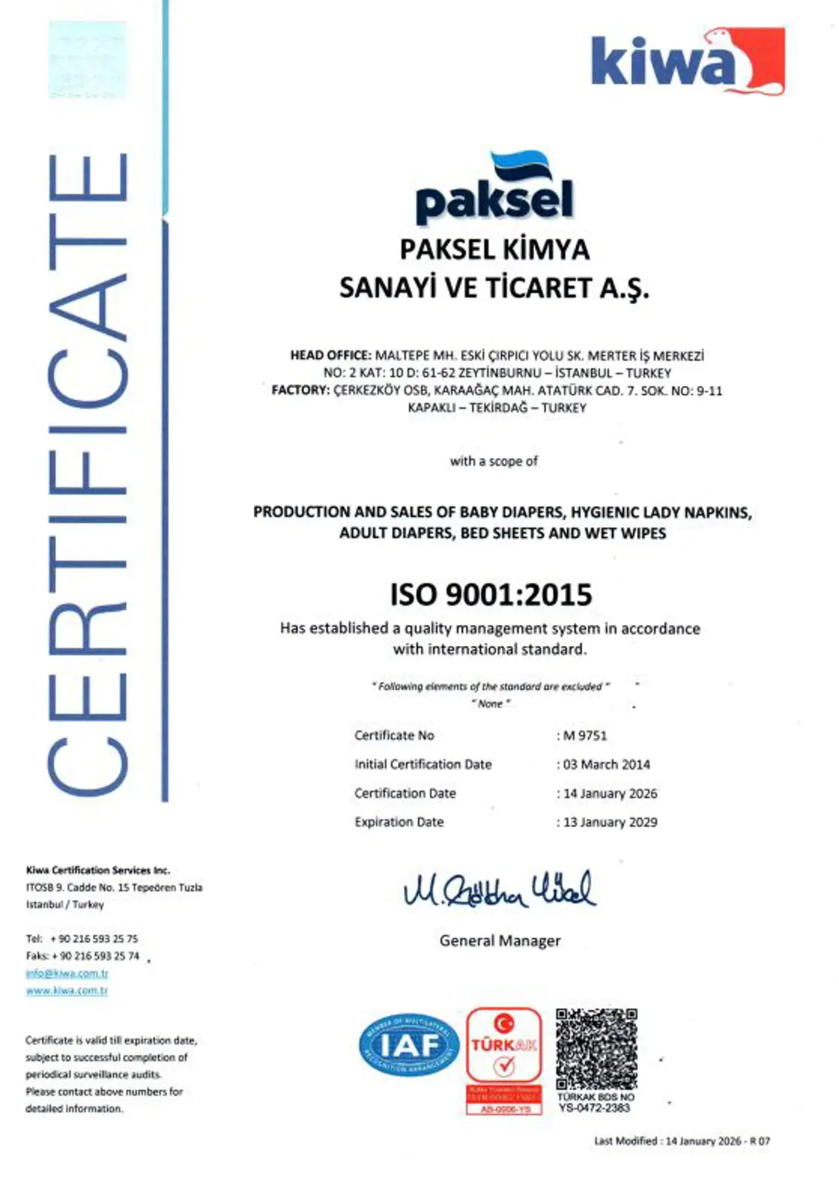Kalite Belgelerimiz - Paksel