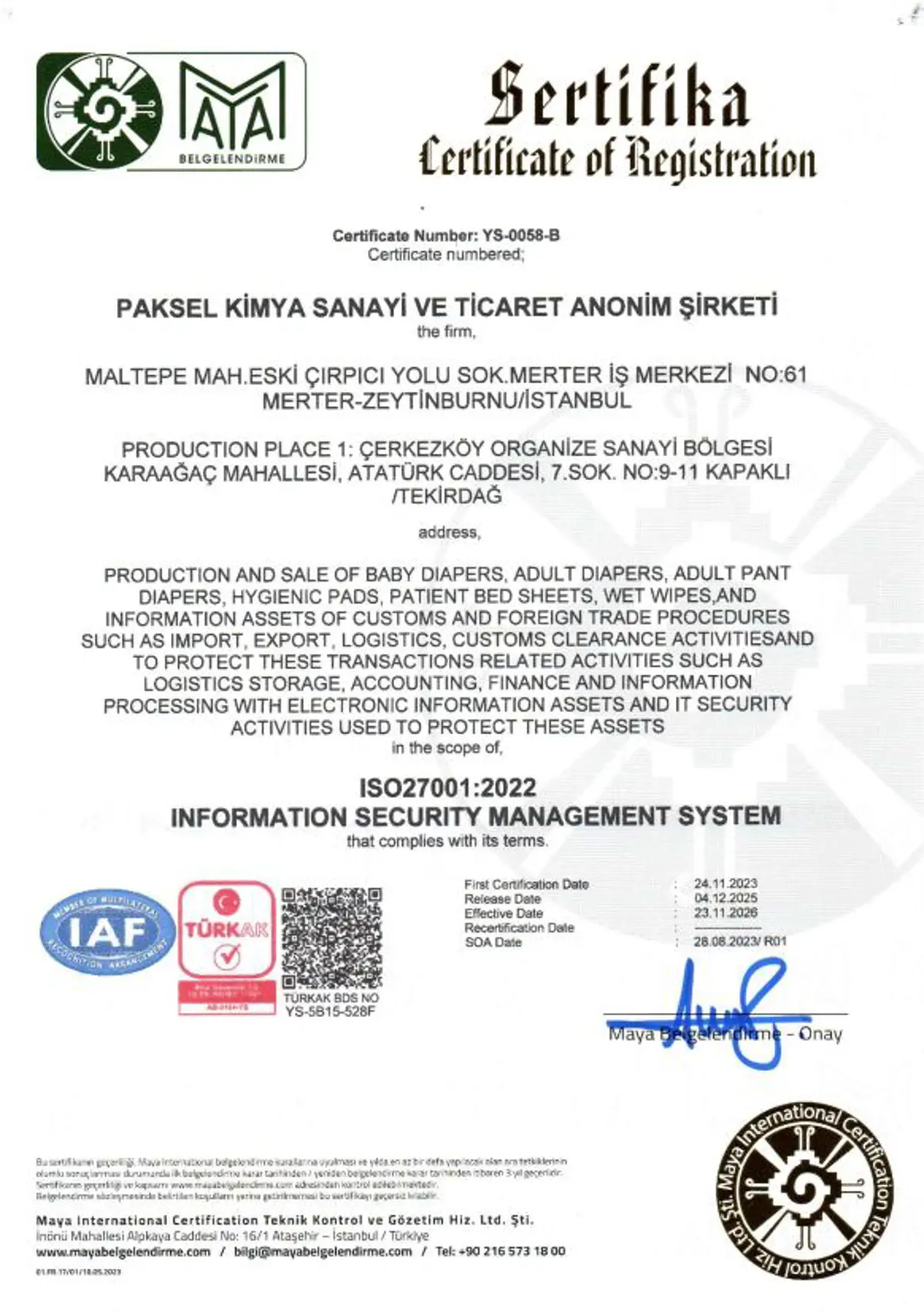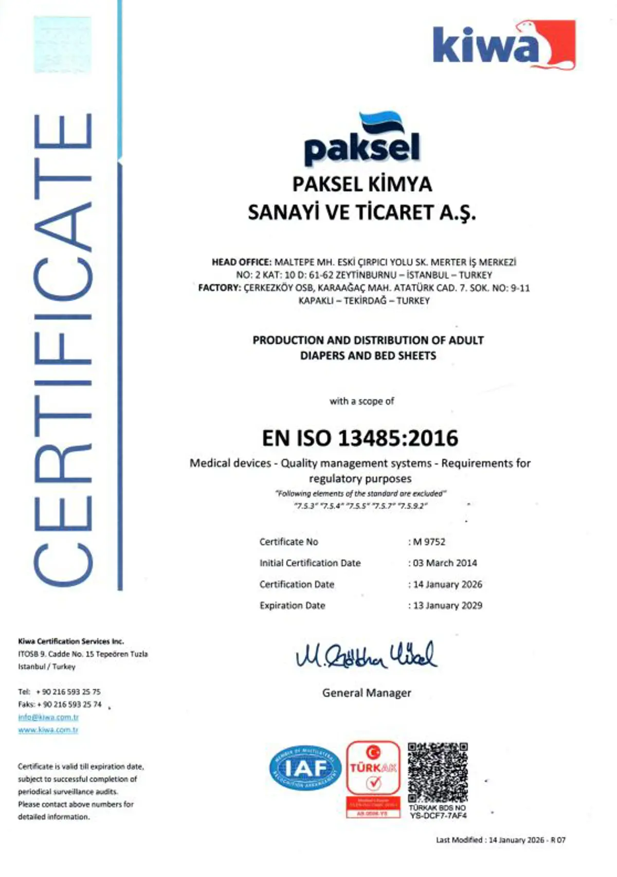 Kalite Belgelerimiz - Paksel